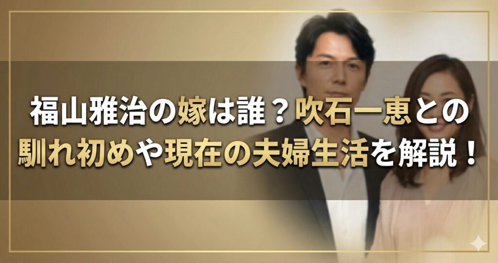 福山雅治さんの奥様は誰なのか。 結婚発表当時から現在まで、多くの注目を集め続けています。 この記事では、福山雅治さんの奥様である吹石一恵さんとの馴れ初めや、現在の夫婦生活について詳しく解説します。 福山雅治 嫁の結婚発表が話題になった理由 こ... -