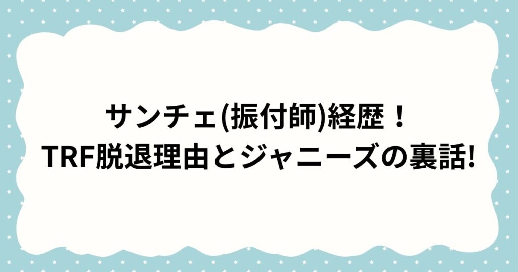 サンチェ(振付師)経歴!TRF脱退理由とジャニーズの裏話!