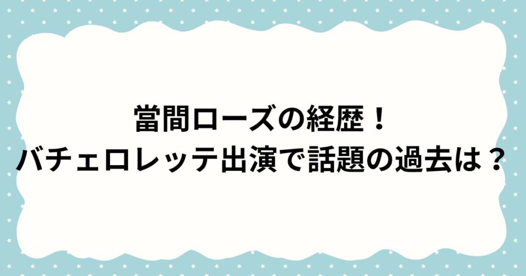 當間ローズの経歴!バチェロレッテ出演で話題の過去は?