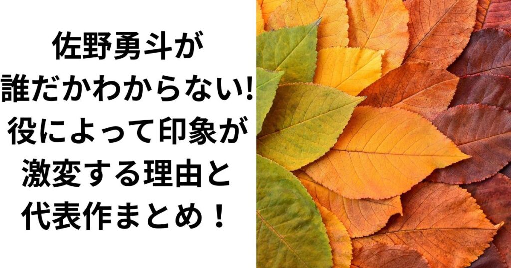 若手俳優として活躍中の佐野勇斗さん。 ドラマや映画で見かけるたびに「あれ、この人誰だっけ?」と思ったことはありませんか? 実は佐野勇斗さんは、役によって印象が激変することで知られる俳優なんです。 同じ俳優とは思えないほど雰囲気が変わるため、... -