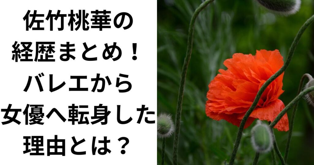 佐竹桃華さんをご存知ですか? バレエダンサーから女優へと転身し、今注目を集めている若手女優です。 今回は、佐竹桃華さんの経歴や、バレエから女優への転身理由について詳しくお伝えします。 彼女の魅力や活躍の秘密に迫りますので、ぜひ最後までお読み... -