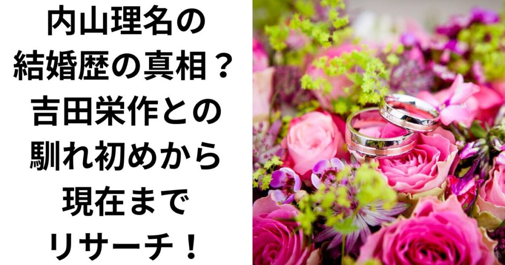 女優として活躍する内山理名さんの結婚歴について、気になっている方も多いのではないでしょうか? 今回は、内山理名さんの結婚歴の真相や、現在の夫である吉田栄作さんとの馴れ初め、そして結婚後の生活まで徹底的に解説していきます。 内山理名さんの結... -