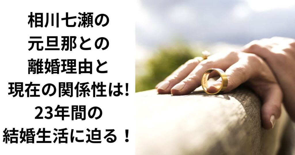 相川七瀬さんと元旦那さんの離婚が話題となっています。 23年間という長い結婚生活を経て、2025年9月に離婚を公表した相川七瀬さん。 今回は、相川七瀬さんと元旦那さんとの結婚生活、離婚理由、そして現在の関係性について詳しくお伝えします。 相川七瀬... -