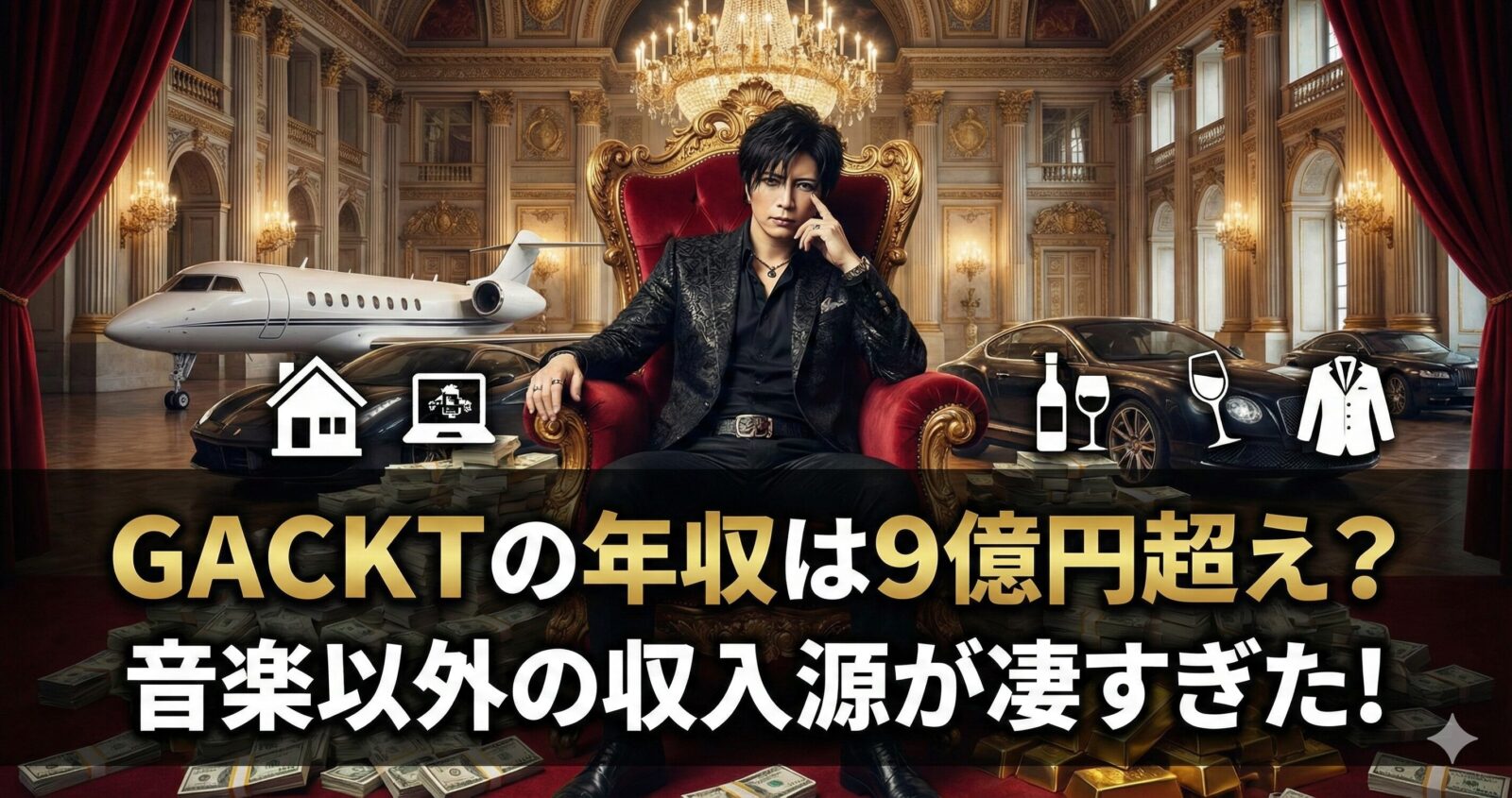 GACKTさんの年収は2025年時点で推定約9億円前後とされており、過去最高は12億円でした。
